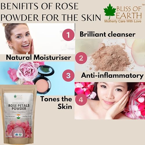 Bliss of Earth Rose Petals Powder 453GM 100% Pure Natural | Great For Face & Skin (Pack Of 3)