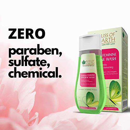 The woman of today is undoubtedly unstoppable! With a wide array of skincare hair care and body care products available at her disposal one product an indispensable one at that rarely makes it to her closet of skin essentials An effective gentle and au natural feminine intimate wash. Throw all your worries of facing discomfort itchiness rashes and what not with Bliss of EarthoFeminine Intimate Wash. Our composition boasts off splendid ingredients such as Bliss of Earth Alcohol-Free Witch Hazel Bliss of Earth Tea Tree Essential Oil all of which cleanse your intimate areas while being incredibly mild non-irritating and gentle all in one go! The presence of Bliss of EarthoTea Tree Essential Oil ensures that your intimate area gets skin benefits in galore. From keeping chances of developing fungal infections at bay to killing off any bacteria thanks to its anti-bacterial properties from easing any kind of skin inflammation to de-odorizing your groin keeping the fishy stench at bay Tea Tree Essential Oil is power-packed and spells only goodness for your skin! Bliss of EarthoFeminine Intimate Wash also ropes in an equally skin-loving ingredient Witch Hazel. Renowned for its ability to put the kibosh on bacterial infection besides expediting the process of healing of scars spots razor cut marks etc. Witch Hazel also helps skin in maintaining its elasticity. Goodness goodness and more goodness with a dash of gentility no wait actually loads of it wave adieu to discomfiting days when you had nothing to your intimate areaorescue now that a completely natural handmade and cruelty-free formulation is here! Motherly care in all the senses. Your intimate parts ideal pH level is maintained by this bottle of motherly goodness that keeps you as fresh as a daisy round the clock!