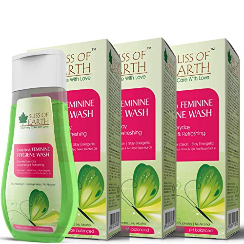 The woman of today is undoubtedly unstoppable! With a wide array of skincare hair care and body care products available at her disposal one product an indispensable one at that rarely makes it to her closet of skin essentials An effective gentle and au natural feminine intimate wash. Throw all your worries of facing discomfort itchiness rashes and what not with Bliss of EarthoFeminine Intimate Wash. Our composition boasts off splendid ingredients such as Bliss of Earth Alcohol-Free Witch Hazel Bliss of Earth Tea Tree Essential Oil all of which cleanse your intimate areas while being incredibly mild non-irritating and gentle all in one go! The presence of Bliss of EarthoTea Tree Essential Oil ensures that your intimate area gets skin benefits in galore. From keeping chances of developing fungal infections at bay to killing off any bacteria thanks to its anti-bacterial properties from easing any kind of skin inflammation to de-odorizing your groin keeping the fishy stench at bay Tea Tree Essential Oil is power-packed and spells only goodness for your skin! Bliss of EarthoFeminine Intimate Wash also ropes in an equally skin-loving ingredient Witch Hazel. Renowned for its ability to put the kibosh on bacterial infection besides expediting the process of healing of scars spots razor cut marks etc. Witch Hazel also helps skin in maintaining its elasticity. Goodness goodness and more goodness with a dash of gentility no wait actually loads of it wave adieu to discomfiting days when you had nothing to your intimate areaorescue now that a completely natural handmade and cruelty-free formulation is here! Motherly care in all the senses. Your intimate parts ideal pH level is maintained by this bottle of motherly goodness that keeps you as fresh as a daisy round the clock!