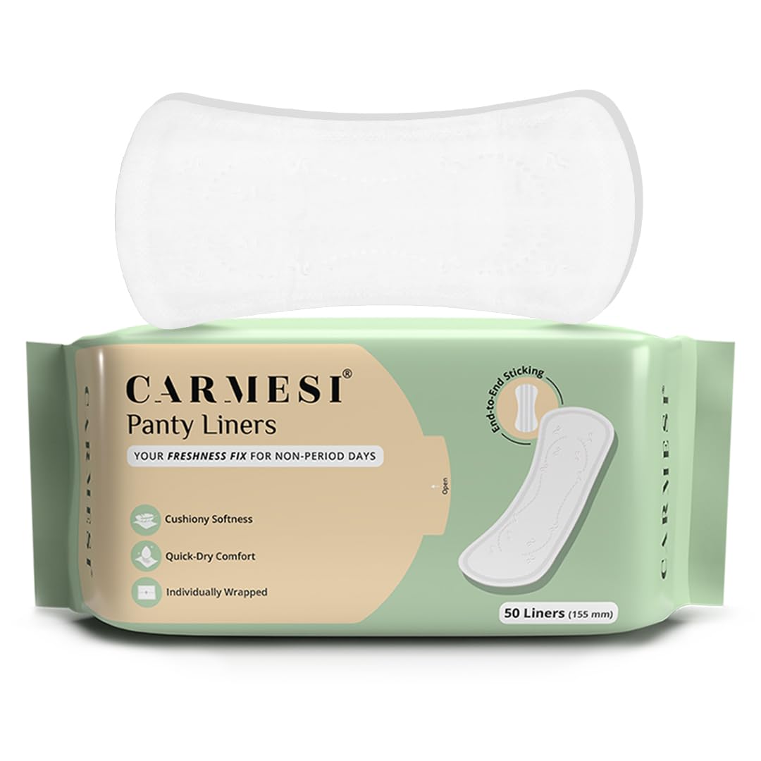Carmesi Panty Liners - 50 Pieces | Cushiony Soft | Protect against Spotting & Light Discharge | End-To-End Sticking | Keep You Fresh & Dry All-Day Long | Non-Toxic & Unscented