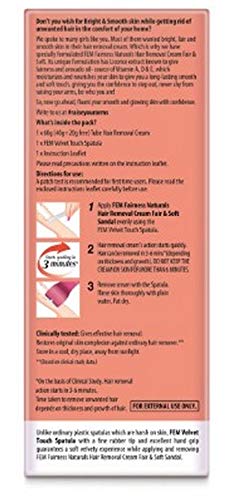 So it takes a lot of days to deliver it even though I live in the state capital. But it works really well, removes the hair perfectly and leaves the skin smooth and subtle. It gave me absolutely zero rashes and no itching at all. So I took an early morning hot water bath, trimmed my legs and arms with a beard trimmer and then used the parachute moisturizer on my legs and arms. Then I waited till late afternoon and before applying it I gently cleaned my arms and legs with a damp cloth. Then I spread a thin layer of this cream on my right lower leg, below the knee, set a timer on my phone for 4 mins 20 secs and start the timer as soon as the cream is spread. When there are 20 secs left on the timer, I'd start scrubbing the cream with spatula off my lower leg. I reapted the process with my upper legs, the other leg and my arms. The process needs to be step by step, so as to avoid over application of the cream. All my body parts are smooth and subtle now and even though I have vericose veins in my legs, I faced no issues at all. After removing the hair clean the area with a damp cloth to make sure no residue of the cream remains on the skin after the hair is removed. I used it on my chest, lower back and stomach as well and everything worked out perfectly fine for me. I waited for 1 hour post hair removal, then took a bath with luke warm water and then applied the same parachute moisturizer on all my body parts. The results are absolutely mind blowing but my reason for hair removal isn't the same as others, I have been instructed by my masseur to do it but women will just love the results. Make sure to trim yr overgrowth to fine hair and then use any hair removal cream, u'll be surprised absolutely fantastic the results are then. Fem hair removal works really well but make that u remove it 3-6 mins after application.