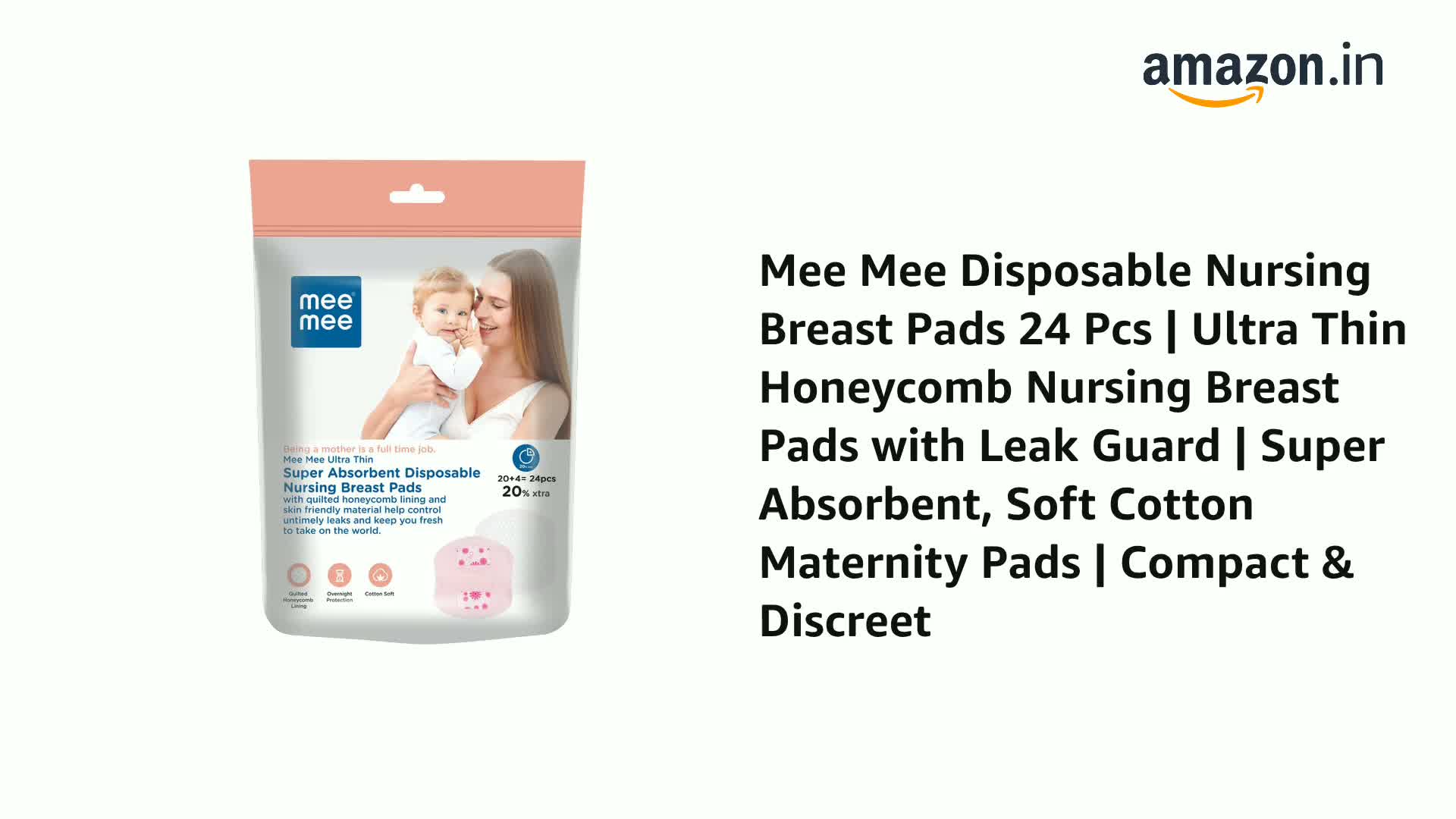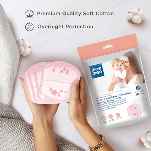 Mee Mee's Ultra Thin Super Absorbent Disposable Nursing Pads you can stay fresh and comfortably clean. The pad has a contoured shape with multiple layers that have unique moisture channels. The silky soft top-sheet has a one-way flow barrier that traps the leaks leaving your skin dry and clean.