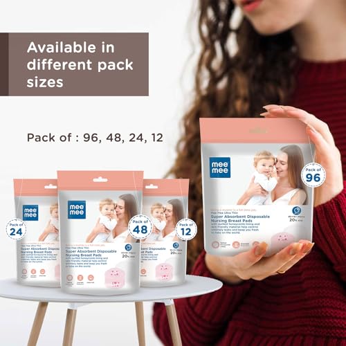 Mee Mee Disposable Nursing Breast Pads 96 Pcs | Ultra Thin Honeycomb Nursing Breast Pads with Leak Guard | Super Absorbent, Soft Cotton Maternity Pads | Compact & Discreet