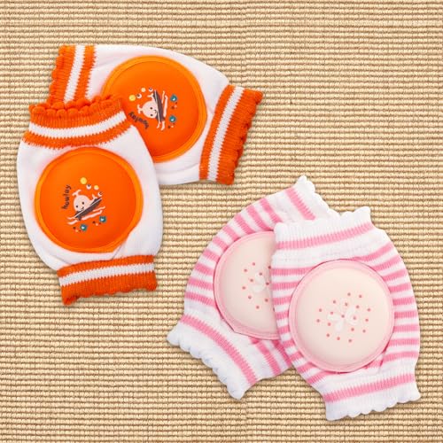 Mee Mee Soft Baby Knee/Elbow Pads (Pink,Orange, Pack of 2)