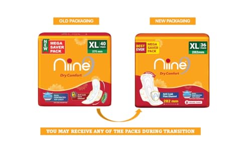 Niine Dry Comfort XL Sanitary Pads for Women |36 Pads, Pack of 1| 282 mm Long| Fast Absorption| Prevents Wetness & Leakage| Enjoy Leak-free Periods |With Anti-Leak Flow Channel