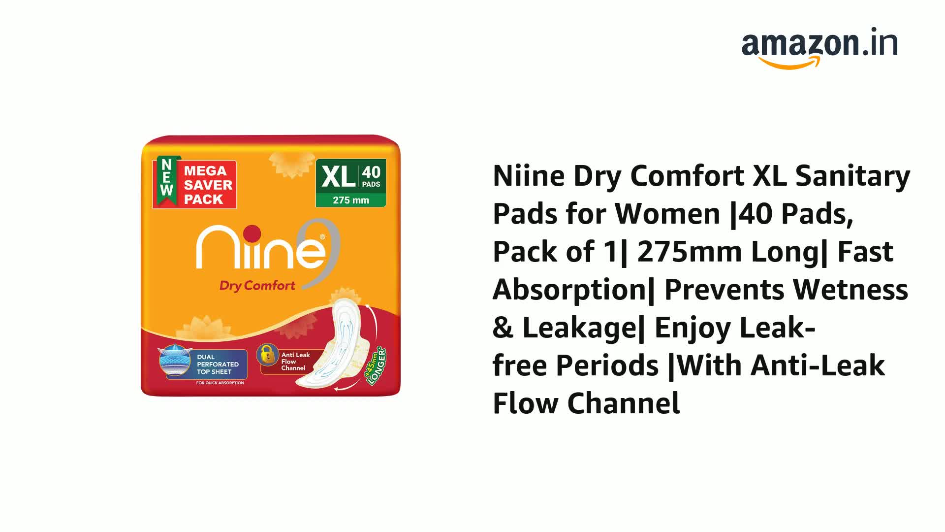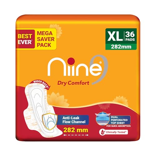 • UNIQUE DESIGN: Niine Dry Comfort pads are extra-long sanitary pads that offer adequate coverage for stain-free periods. The dual perforated top sheet offers faster absorption & gives clean and dry protection. It helps lock wetness faster & ensures safety