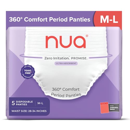 Nua Overnight Disposable Period Panties | Pack of 5 | (M - L) | Heavy Flow Absorbency | Leakproof Protection | Discreet & Secure | Breathable | No Rashes | No Discomfort