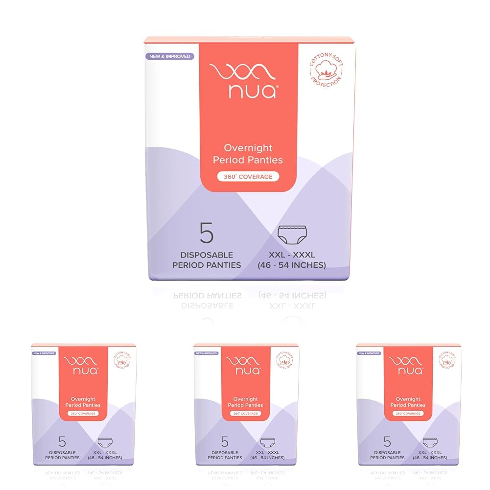 Nua Overnight Disposable Period Panties | Pack of 20 | (XXL-XXXL) | Heavy Flow Absorbency | Leakproof Protection | Discreet & Secure | Breathable | No Rashes | No Discomfort White
