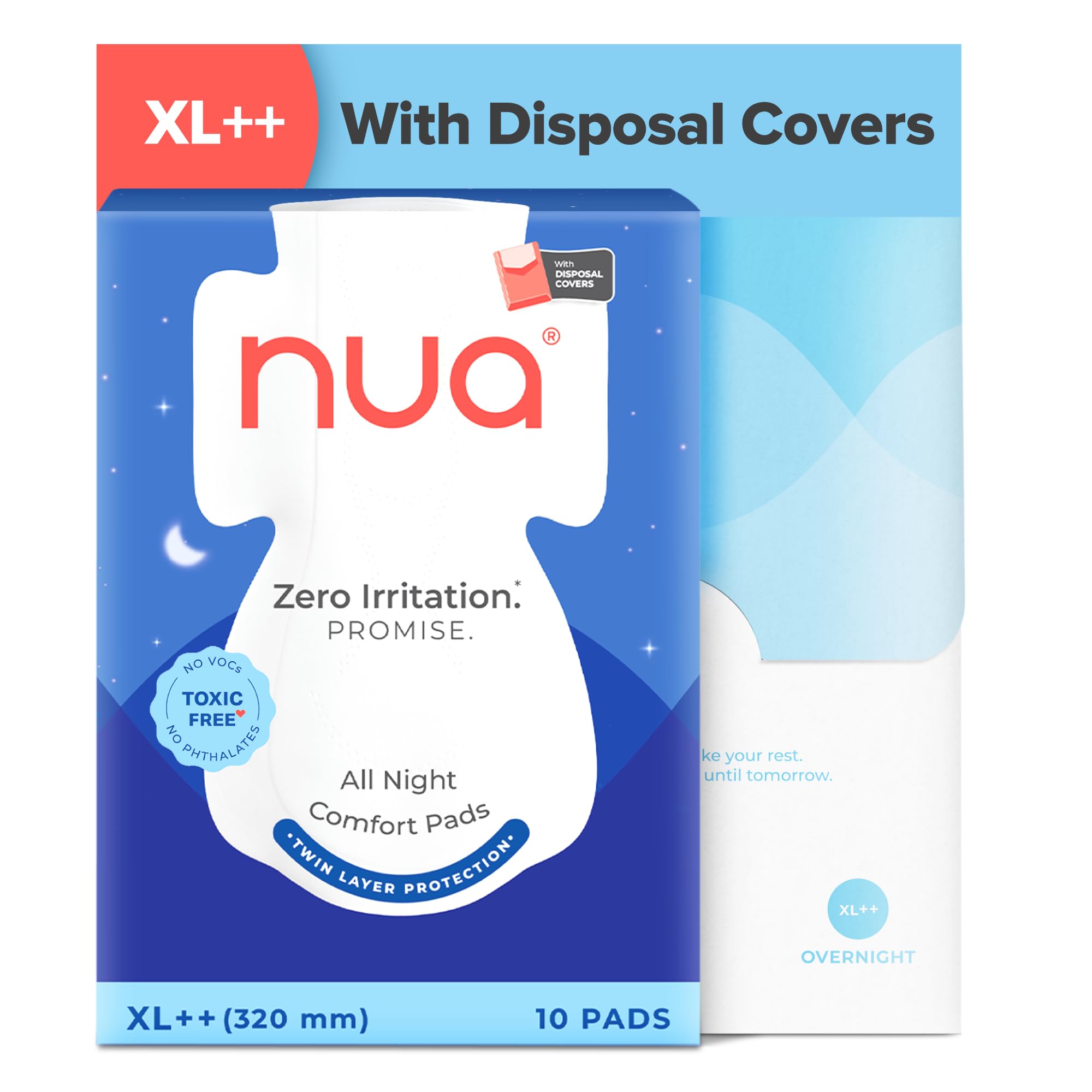 Nua Ultra Safe Night Pads(XL++) for Heavy Flow | Extra Long Leak-Proof Pads | Gentle on Sensitive Skin, Breathable & Rash-Free | Perfect for Night Protection, Maximum Absorbency, and Comfort | Pack of 10 Pads | Size 320mm | Convenient and Hygienic Disposa