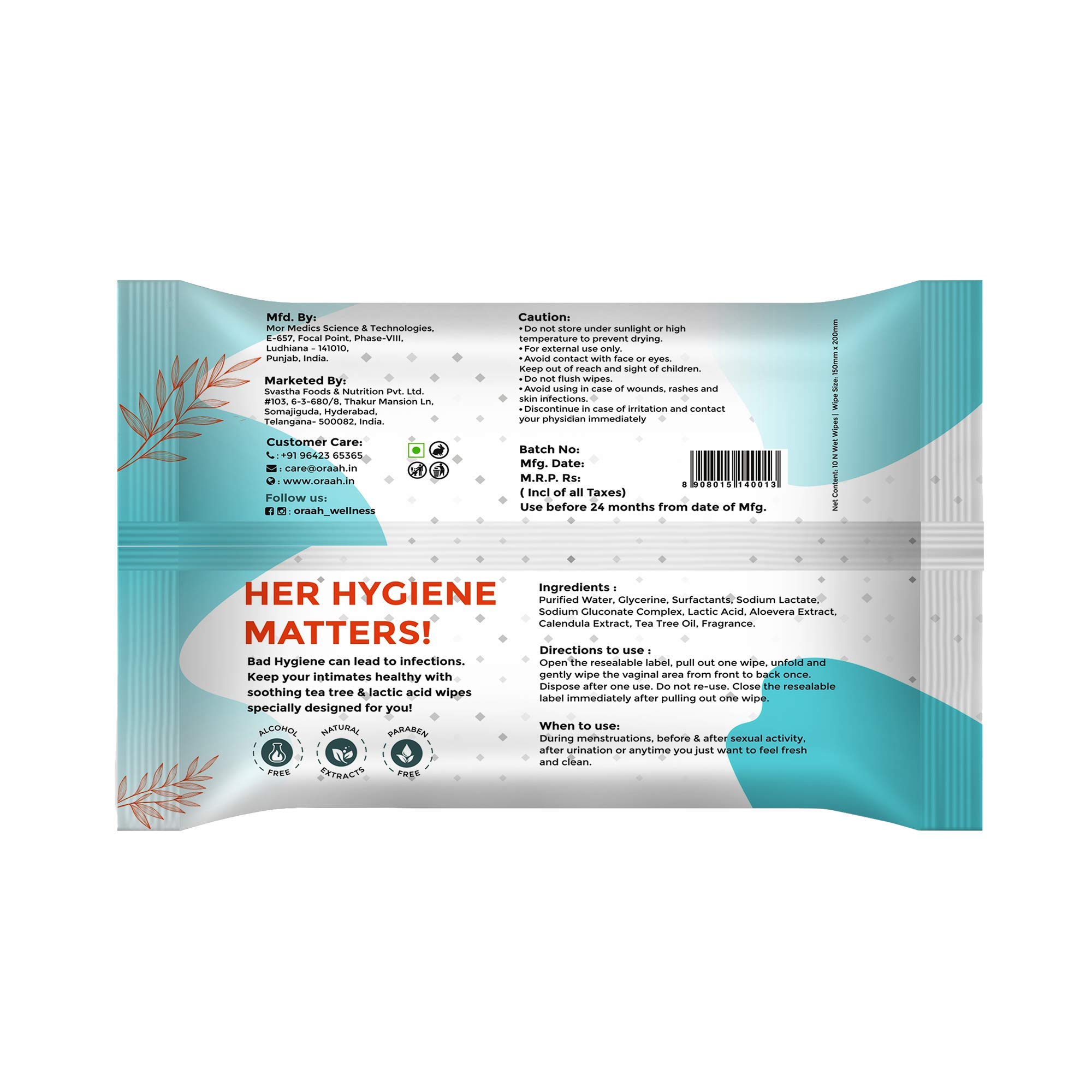 ORAAH Natural Intimate Hygiene Wipes For Women 10 Pack (Set Of 2)