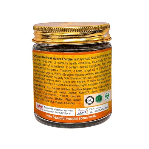ðð«ð¨ðð®ðð ððð¬ðð«ð¢ð©ðð¢ð¨ð§ :- Organic Wellness Women Energizer is an Ayurvedic medicine that is used for the treatment of women's health conditions especially for the management of leucorrhoea. It contains several ingredients that have antimicrobial properties. Therefore it helps to get rid of infections of reproductive organs. Women Energizer reduces oxidative stress and reverts oxidative damage in the body cells. It tones up the uterus and makes female reproductive organs more strong and healthy. It stops excessive fluid discharge; therefore it is useful as a local astringent in vaginitis & leucorrhea Ingredients Ela Kapoor Dalchini Tez Pata Nagarmotha Pudina Ajwain Talispatra Vanslochan Javitri Jaiphal Kalimirch Jeera Binola Long Dhania Peeplamool Kamal Singara Shatavar Nagkesar Badam Pista Supari Ghee Chini Munaka Peepal Chandan