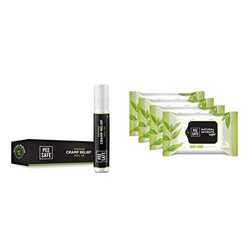 Pee Safe Feminine Cramp Relief Roll On with Ayurveda Extracts - 10 mlThe use of allopathic medicines for period pains can be harmful in the long run especially to the adolescent girls. Pee Safe Feminine Cramp Relief Roll-On is an innovative 100 percent herbal stain-free roll on that provides continuous relief from menstrual cramps during periods with the goodness of Ayurveda. Enriched with the healing benefits of Menthol and Eucalyptus oil it helps with the knotted uterus and relives the pain. The coolness of menthol alleviates the pain and the calmness of Eucalyptus essence acts as an analgesic agent and helps to elevate your mood instantly. The soothing fragrance mixed with natural ingredients absorbs easily and keep the hormones in balance. Pee Safe Feminine Cramp Relief Roll-On is applied near the lower abdomen and the lower back to the general area of discomfort. This stain-free formula works best when applied at the onset of pain.Peesafe Natural Intimate Wipes - 10 Count (Pack of 4)Size: 40 wipespeesafe natural intimate wipes are made from viscose making them extremely soft and comfortable to use. It cleanses and freshens your intimate area without any hassle. Proper care is taken by the skin friendly ph. It is made from the natural extracts like tea tree essential oil. Natural intimate wipe is alcohol paraben and sls free. Its usage provides with freshness prevents rashes and allergies.