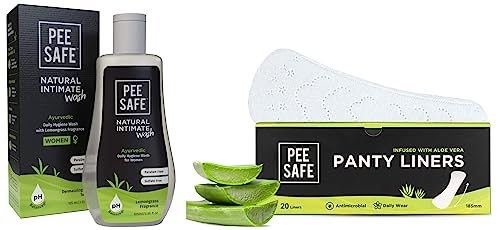 PEESAFE Natural & alcohol free pH Balanced Intimate Wash For Women With Lemongrass Fragrance- 105mlCarefully crafted with natural exquisite ingredients Pee Safe natural intimate wash provides targeted antimicrobial and other health benefits without negatively impacting on the natural vulvovaginal microbiota. Itâs enriched with the wondrous witch hazel extracts an anti-irritant with soothing properties. It also contains antibacterial tea tree essential oil; palasa (butea fronds) which prevents white water discharge and rejuvenates delicate skin and cluster fig (ficus glomerata) useful against urinary tract disorders.PEESAFE Aloe Vera Panty Liners for Extra Comfort - (Set of 1 25 Liners)Pee safe panty liners keep you dry and fresh all day long. Each liner is crafted with a cottony-soft surface infused with aloe vera that lets you enjoy your day without worry of a little flow. Liner's antimicrobial properties protect you from infection while keeping you fresh and clean from vaginal discharge tampon leakage surprise periods and urinary incontinence.