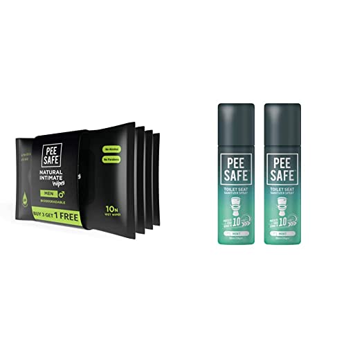 HomeHealth & PersonalPersonal CareWomen WellnessPEESAFE Intimate Wipes for Men Biodegradable pH balanced 40 Wipes Tea Tree & Toilet Seat Sanitizer Spray - Mint Reduces The Risk of UTI & Other Infections Kills 99.9% Germs & Travel Friendly