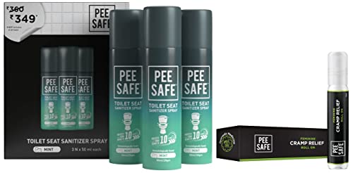 Pee Safe Toilet Seat Sanitizer Spray (50ml - Pack Of 3) - Mint | Reduces The Risk Of UTI & Other Infections | Kills 99.9% Germs & Travel Friendly | Anti Odour DeodorizerPee Safe is Convenient and easy to use disinfectant for toilets and can be also used during traveling. Always keep Pee Safe handy. Acts as a disinfectant for Toilet Seats Door handles Flush Knobs etc keeping you safe from Bacterial and Viral infections. 99.99% sanitization from toilet borne diseases in 5 seconds!Pee Safe Feminine Cramp Relief Roll On with Ayurveda Extracts (10 ml) |100% Herbal Period Pain RelieverThe use of allopathic medicines for period pains can be harmful in the long run especially to the adolescent girls. Pee Safe Feminine Cramp Relief Roll-On is an innovative 100 percent herbal stain-free roll on that provides continuous relief from menstrual cramps during periods with the goodness of Ayurveda. Enriched with the healing benefits of Menthol and Eucalyptus oil it helps with the knotted uterus and relives the pain. The coolness of menthol alleviates the pain and the calmness of Eucalyptus essence acts as an analgesic agent and helps to elevate your mood instantly. The soothing fragrance mixed with natural ingredients absorbs easily and keep the hormones in balance. Pee Safe Feminine Cramp Relief Roll-On is applied near the lower abdomen and the lower back to the general area of discomfort. This stain-free formula works best when applied at the onset of pain.