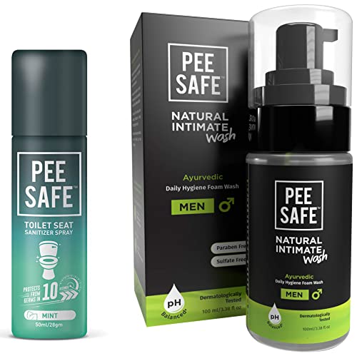 PEESAFE Toilet Seat Sanitizer Spray (50ml) - Mint Reduces The Risk of UTI & Other Infections Kills 99.9% Germs & Travel Friendly - Pack of 2Scent: floral size: pack of 2 still holding on from peeing because you cannot tolerate an alien loo. Or just too horrified by the view of public toilets. Stop worrying and use peesafe toilet seat sanitizer. It will provide you with a soothing and stress free toilet experience anywhere anytime. The long lasting and uplifting fragrance of mint makes sure you don?t have to survive the torture of stinky washroom anymore. Be it home restaurant or any public washroom just spray peesafe toilet seat sanitizer on your toilet seat wait for few seconds and you are ready to use the seat that is sanitized. Also the spray comes handy and fits into even smallest of your bags. This spray takes away all your washroom horrors. Safety of sanitizer and subtle fragrance make sure you keep peesafe toilet seat sanitizer spray with you all the time.PEESAFE Natural Intimate Wash For Men With Ayurveda Extracts - 100mlIntimate hygiene is an important part of menâs health. Regular use of soap and body washes can cause itching irritation and dryness making one feel uncomfortable. Pee Safe Natural Intimate Wash is specially formulated with Ayurvedic ingredients that gently cleanses & protects your intimate area. It helps to preserve the natural acidic pH of the intimate area keeping you clean and hygienic. Our foam-based wash is specially curated for your intimate area is gentle enough for daily use.