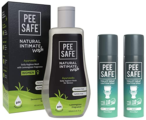 PEESAFE Toilet Seat Sanitizer Spray (50ml) - Mint Reduces The Risk of UTI & Other Infections Kills 99.9% Germs & Travel Friendly - Pack of 2 Scent: floral size: pack of 2 still holding on from peeing because you cannot tolerate an alien loo. Or just too horrified by the view of public toilets. Stop worrying and use peesafe toilet seat sanitizer. It will provide you with a soothing and stress free toilet experience anywhere anytime. The long lasting and uplifting fragrance of mint makes sure you don?t have to survive the torture of stinky washroom anymore. Be it home restaurant or any public washroom just spray peesafe toilet seat sanitizer on your toilet seat wait for few seconds and you are ready to use the seat that is sanitized. Also the spray comes handy and fits into even smallest of your bags. This spray takes away all your washroom horrors. Safety of sanitizer and subtle fragrance make sure you keep peesafe toilet seat sanitizer spray with you all the time. PEESAFE Natural & alcohol free pH Balanced Intimate Wash For Women With Lemongrass Fragrance- 105ml Carefully crafted with natural exquisite ingredients Pee Safe natural intimate wash provides targeted antimicrobial and other health benefits without negatively impacting on the natural vulvovaginal microbiota. Itâs enriched with the wondrous witch hazel extracts an anti-irritant with soothing properties. It also contains antibacterial tea tree essential oil; palasa (butea fronds) which prevents white water discharge and rejuvenates delicate skin and cluster fig (ficus glomerata) useful against urinary tract disorders.