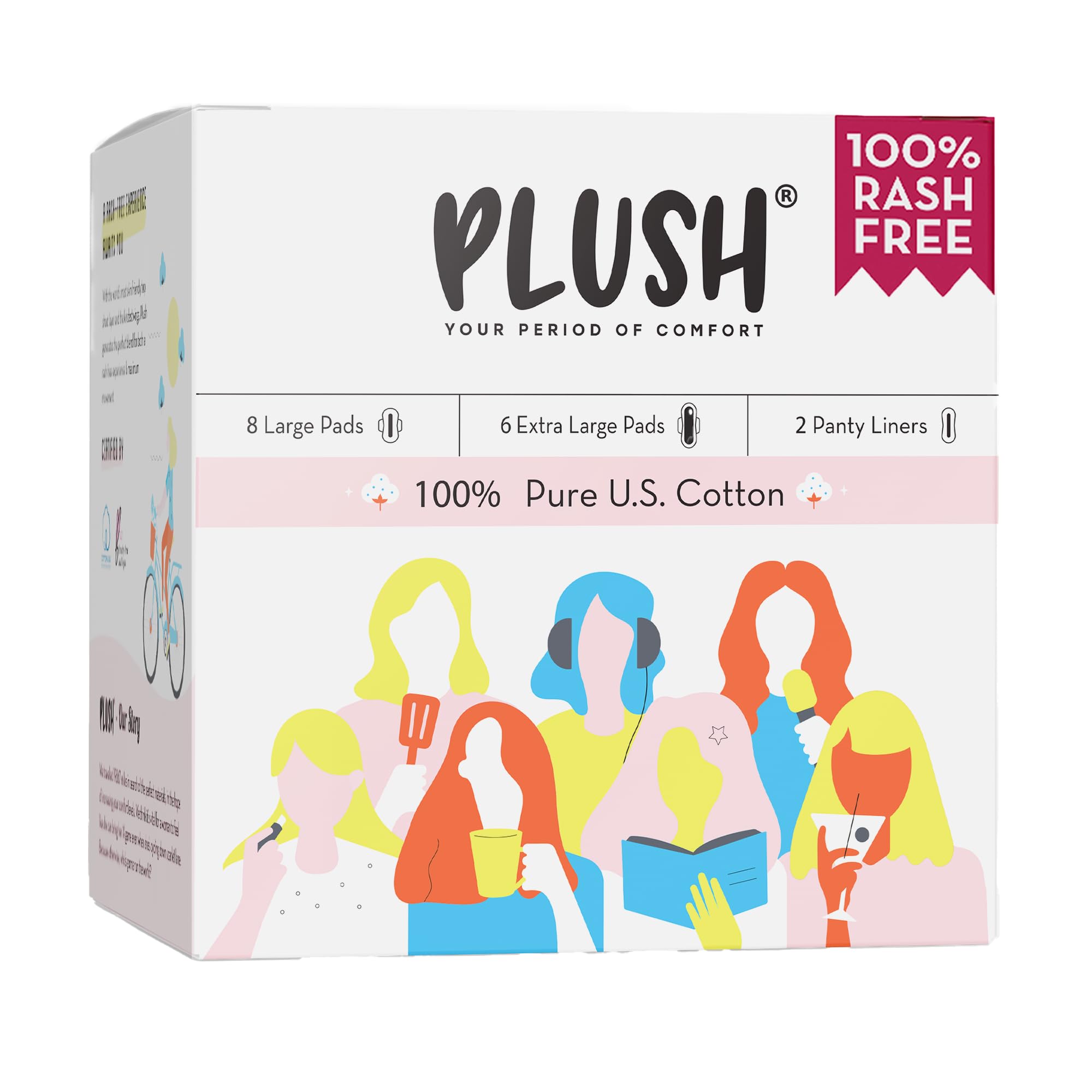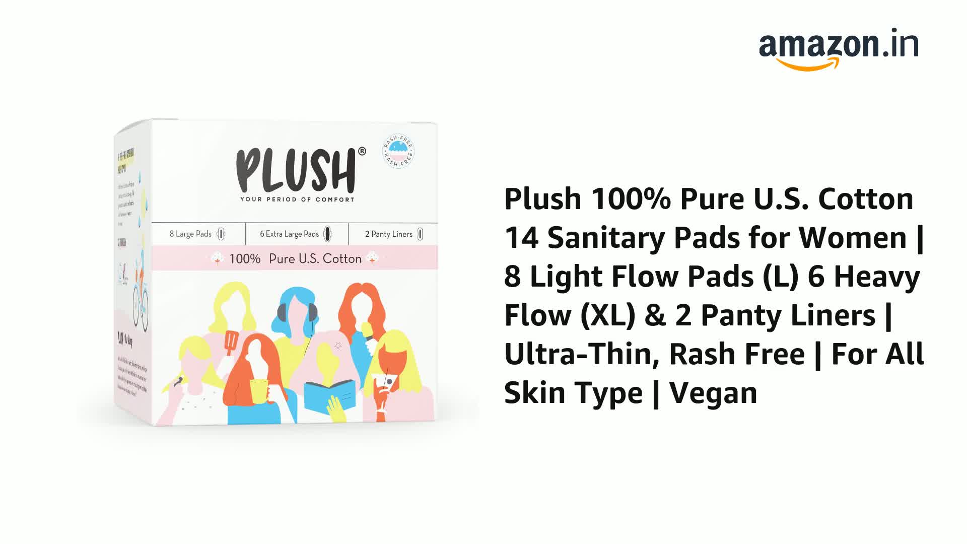 Plush Pads came with a nice packaging with 8 large pads, 6 extra large pads and 2 panty liners. These are cotton comfy pads which are rash free. Got really comfortable. The product is quiet good.