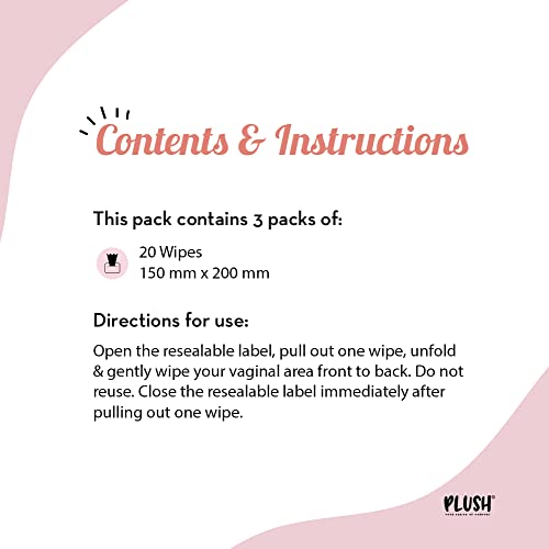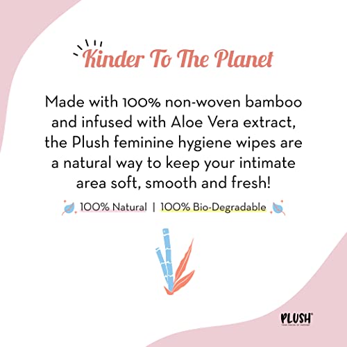 Plush All Natural 100% Biodegradable Intimate Vaginal Wipes for Daily Use || Infused with Aloe Vera || Maintains Vagina pH Balance || All Natural & Vegan (Pack of 2 x 30 = 60 Wipes)