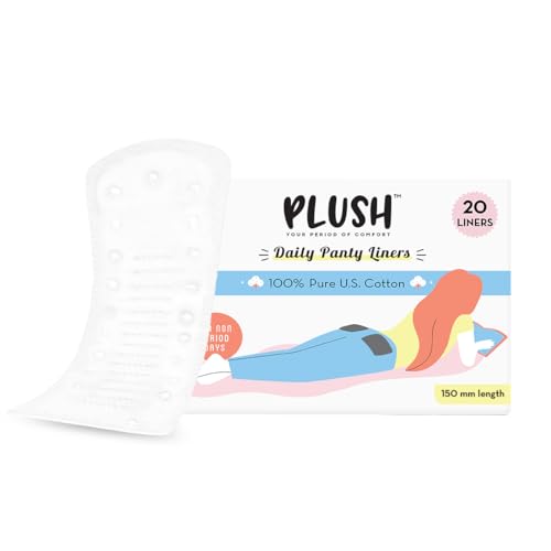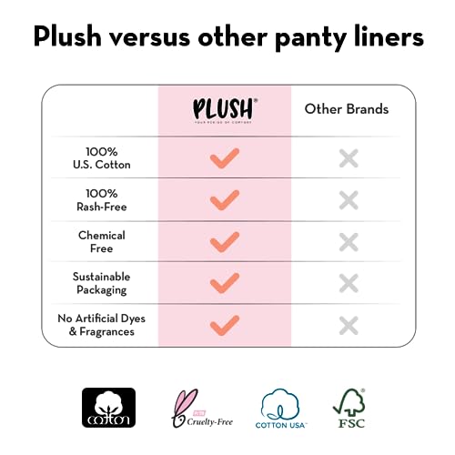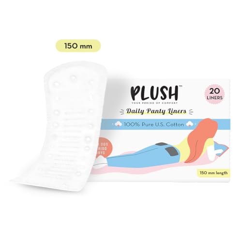 Plush Ultra Thin Panty Liners for Women Daily Use, 20 Liners | 1mm Thin, 150mm Long | Pure U.S. Cotton Liners for Rash-Free Periods | Suitable For Sensitive Skin | No Toxins, No Parabens