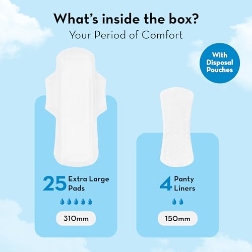 • 25 CURATED SOFT PADS WITH LINERS - This box contains 25 Medium Flow XL and 4 Panty Liners For Rash Free Periods crafted to cater to all your flows throughout your cycle. All naturally absorbent and safe for sensitive skin