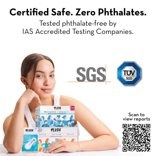 Plush 100% Pure US Cotton Ultra-Thin Rash Free & Soft Natural Sanitary Pads for Women - with Disposable Pouches | All Vegan | For Normal-Sensitive Skin (XL, 25) (Pack of 1)