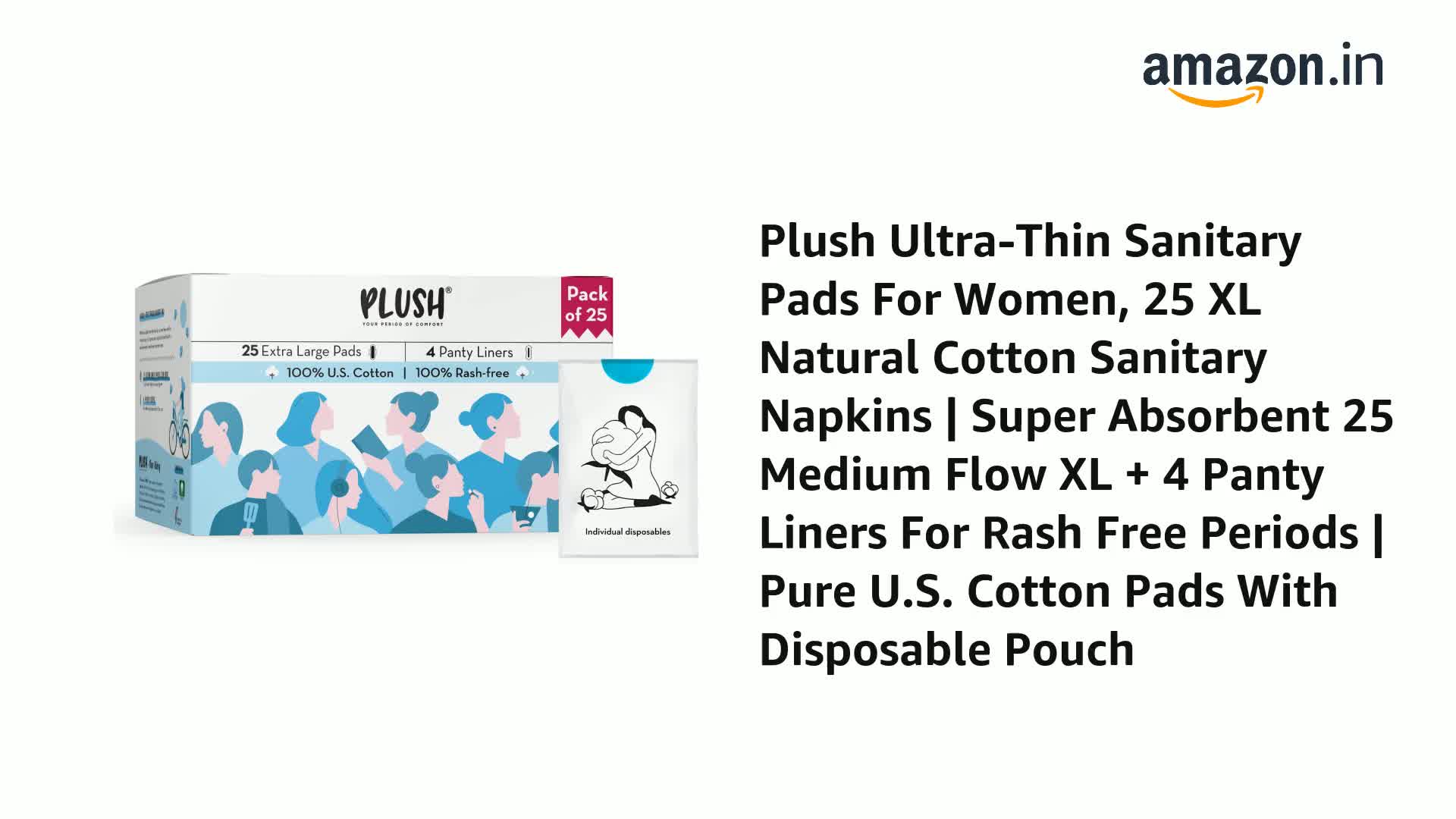 ??Product Name: Plush Ultra-thin 25 XL Sanitary pads + 4 Panty Linners + Disposable Pouches?? Printed MRP: 449??Offer Price: 349??Shelf Life: 3 years from the manufacturing date??Things I liked in this product:? Pads are Ultra-thin and in the size of XL (12 Inches) and the packaging is very impressive.? Most beautiful thing is it comes with biodegradable disposable pouches.? This pads are super quick absorbent, no chances of leakage.? It feels super soft and made of 100% cotton.? If you have a very sensitive skin and prone to itching, rashes, go for it without a second doubt.? Most importantly it's harmful chemicals free, safe to use.? Per pad it costs around Rs. 14 (With 4 free panty liners + Disposable pouches), it's may sound costly but once you use you will understand the difference, you will get what you pay for. They are premium Quality product. Must buy product.Happy Buying! ??