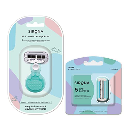 Sirona Mini Travel Razor is perfect to carry along and use as per your convenience. It comes in a travel-friendly box that is highly easy to carry. Ergonomic design with rubber grip handle offers cushioned and comfortable grip for easy use. The pivoting head safely removes hair from all contours of the body. 5 stainless steel blades ensure a precise and clean shave. Aloe Vera & Vitamin E lubrication strip moisturises the skin as you shave. Moreover open flow cartridge allows quick and easy rinsing of blades.