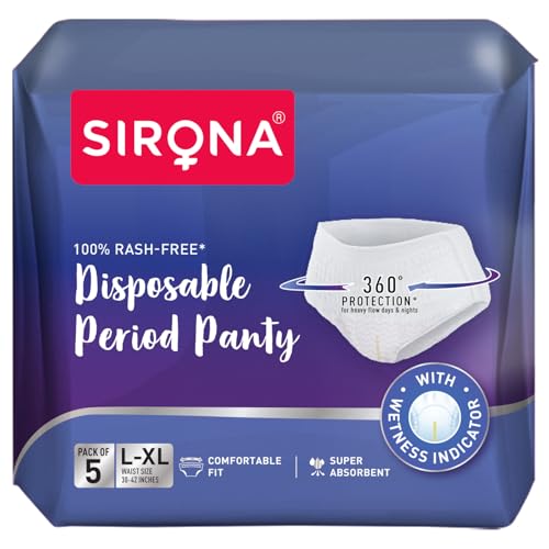 Sirona Disposable Period Panties for Women | L – XL | 360° Sanitary Protection for Heavy Flow | No Leakage, Rashes, or Discomfort | Maternity Panties with High Absorbency | Pack of 5