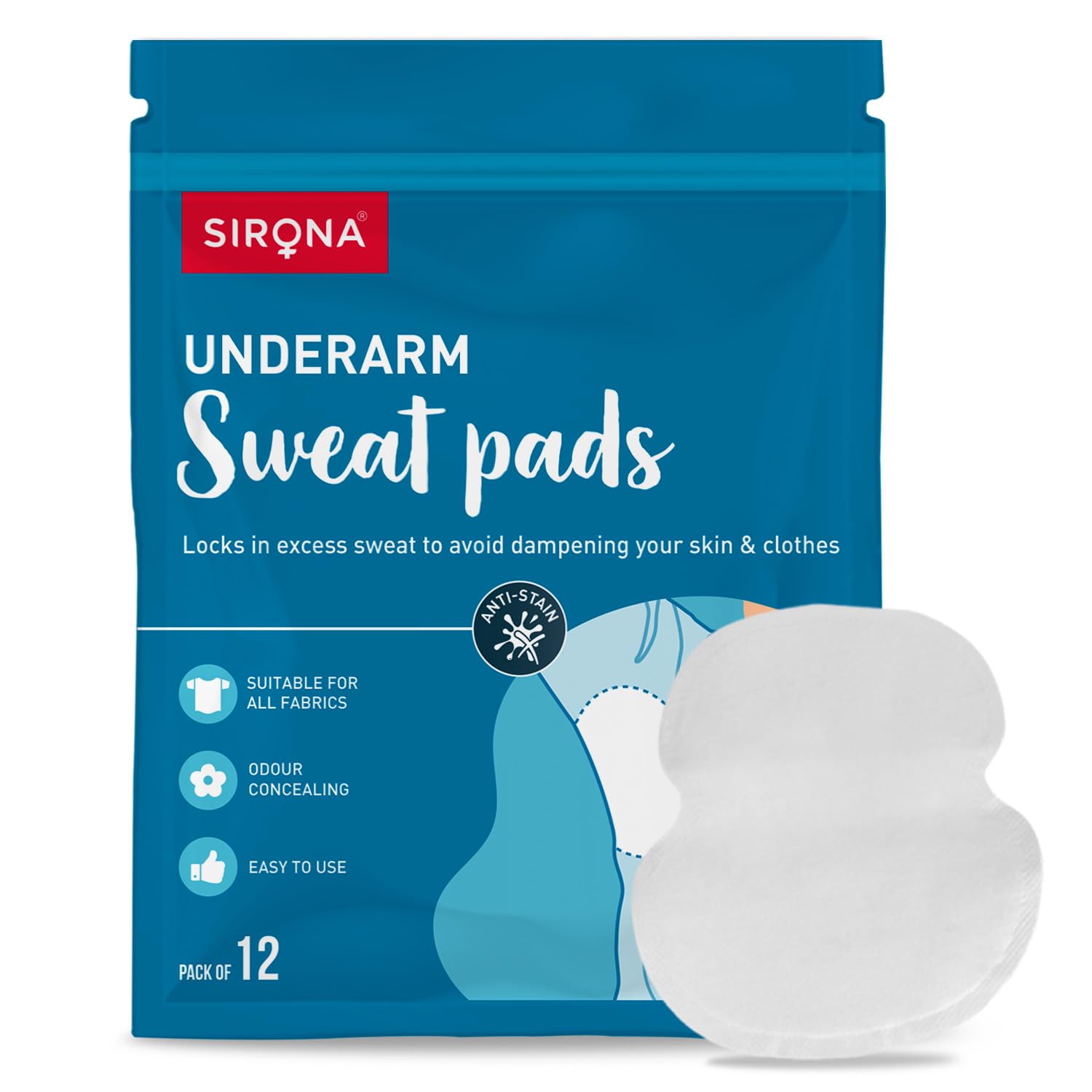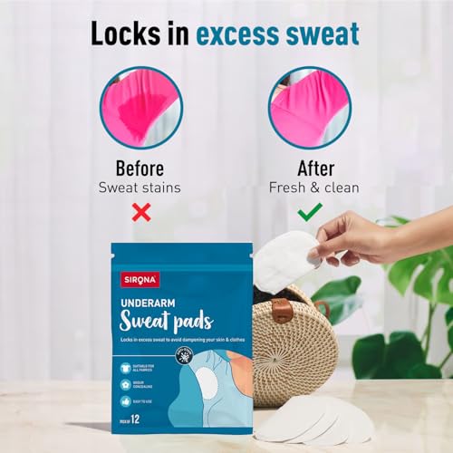 Sirona Disposable Underarm Sweat Pads for Men and Women, 12 Pads (Pack of 1) | Peel-off | Prevents Stains, Absorbs Sweat & Unpleasant Odour