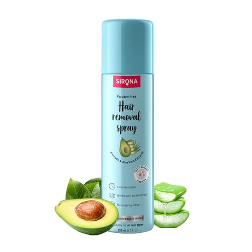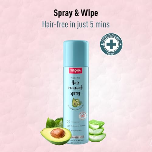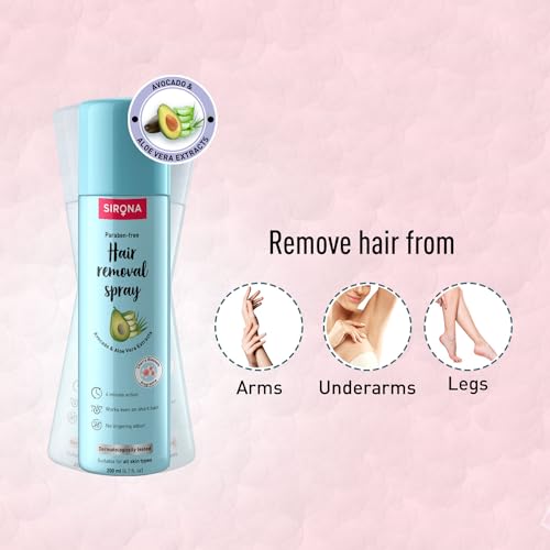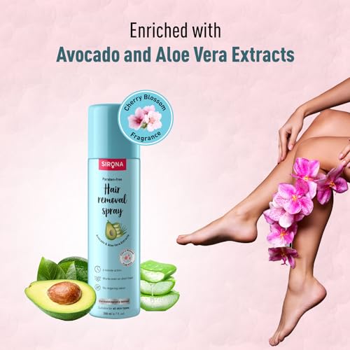 Sirona Hair Removal Cream Spray for Women | Painless Body Hair Removal Spray for Legs, Hands, Underarm & Back | Natural & Safe, with Avocado & Aloe Vera Extract – 200 ml (Pack of 1)