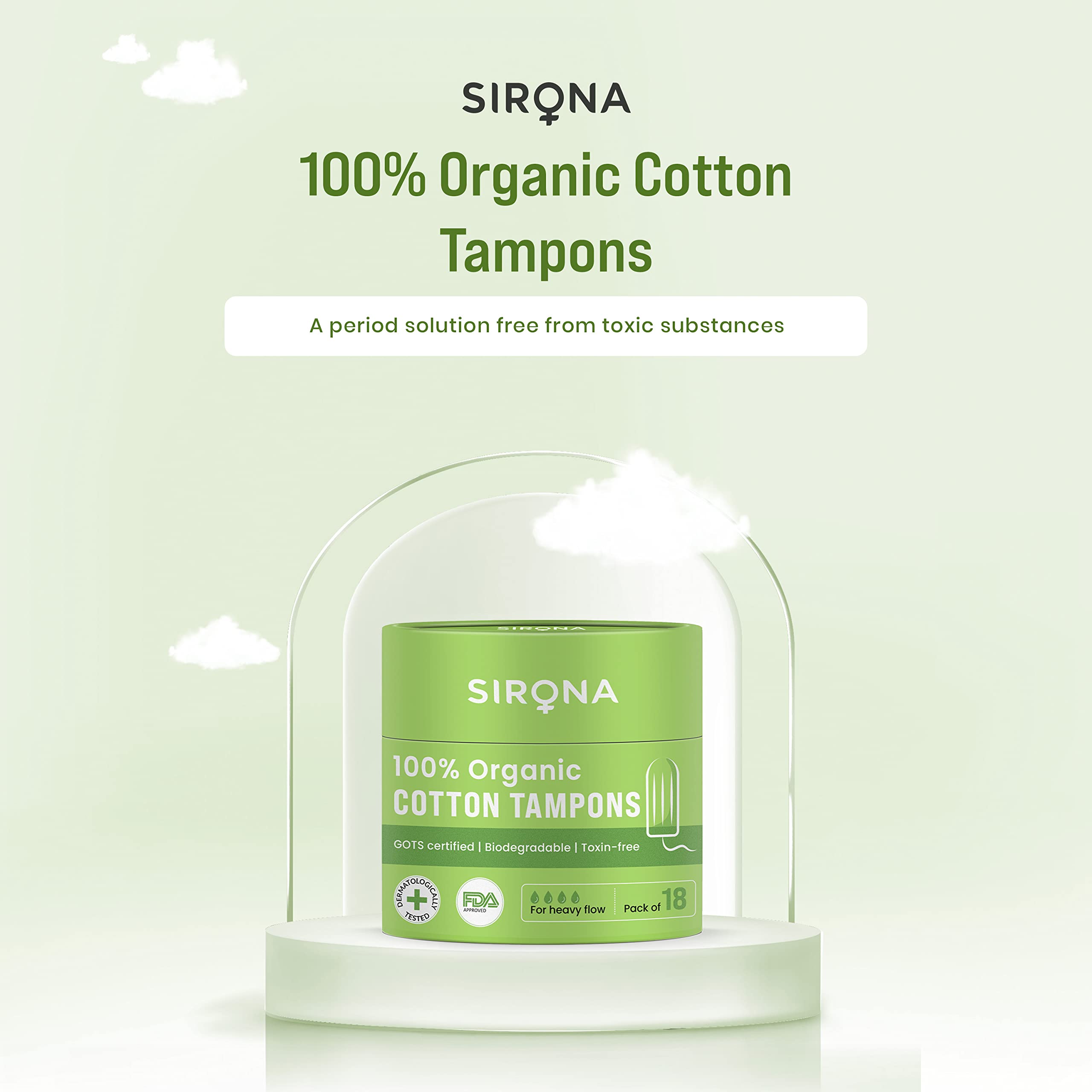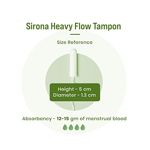 Sirona Heavy Flow Organic Tampons for Women - 18 Tampons | FDA approved | 100% organic cotton | Biodegradable | Highly Absorbent | Rash free protection | Ultra Soft & Comfortable