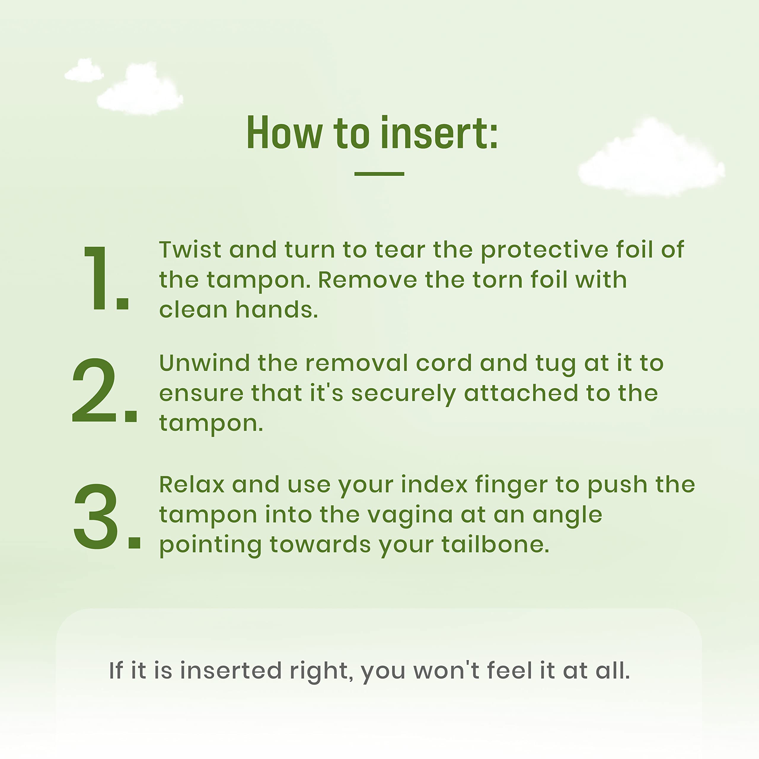 • MADE FROM 100% COTTON: Organic tampons are made from 100% organic cotton cotton which is free from chemicals toxic pesticides and fertilizers making it completely safe.