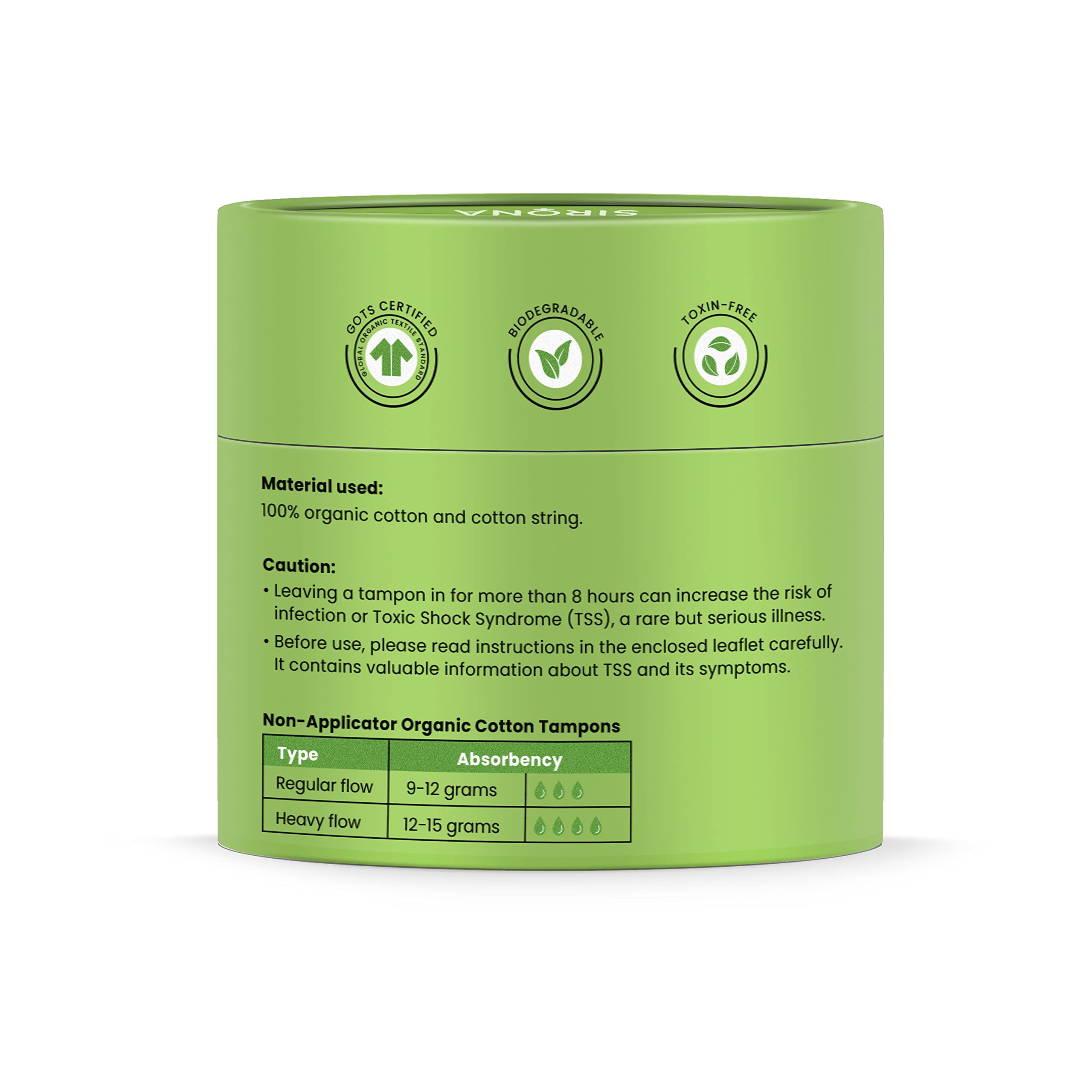 • "HIGHLY ABSORBENT & LEAK PROOF: Sirona tampons are 100% natural and extra soft. The fibre used in the tampons is super absorbent in nature and keeps you leak-proof and odour-free all day. The Tampons provide on the go protection with comfort and convenien