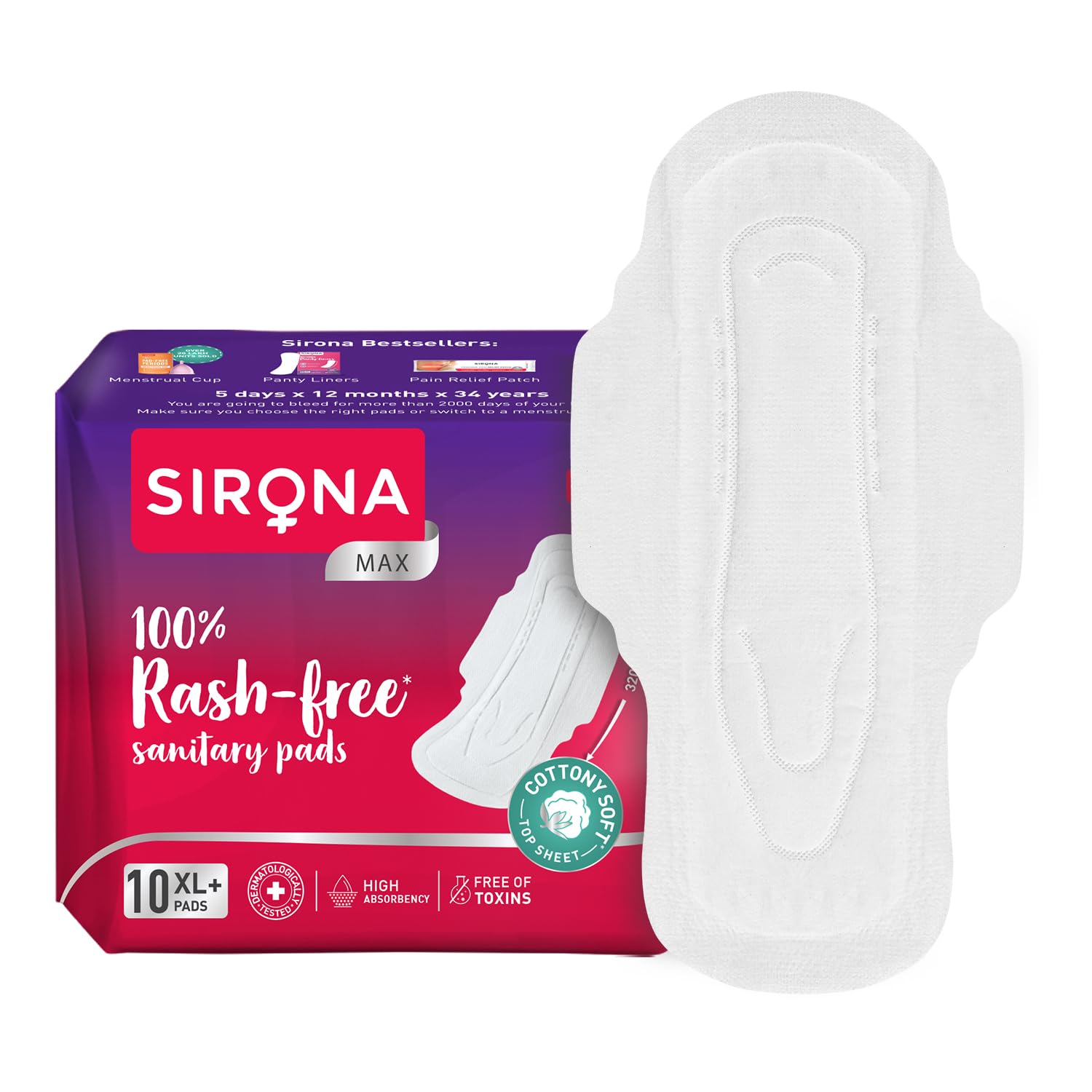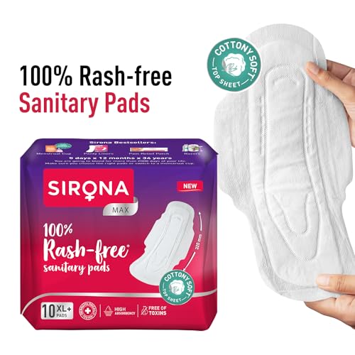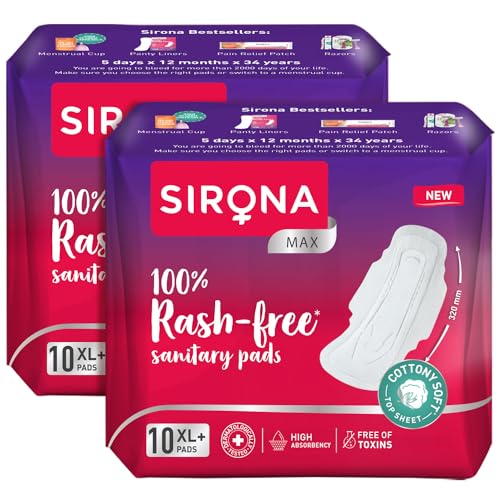 Sirona Max Sanitary Pads for Women | XL Plus (Pack of 20 Pads) | 100% Rash Free & Toxic-Free | Organic Cotton Sanitary Pad | Up to 0% Leakage, Comfortable & High Absorbency