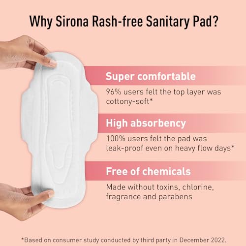 • Wide coverage: Sirona's rash-free sanitary pads ensure a leak-free period. This can be attributed to the pad's wide coverage offering more surface area for absorption.