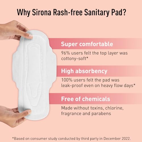 • Wide coverage: Sirona's rash-free sanitary pads ensure a leak-free period. This can be attributed to the pad's wide coverage offering more surface area for absorption.