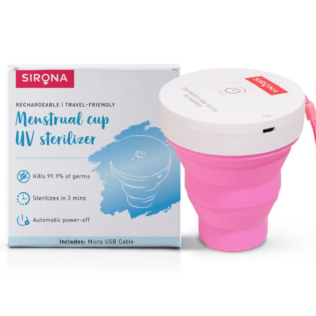 Sirona Rechargeable Menstrual Cup Uv Sterilizer For Women 1 Unit|Auto Power Off|Includes Micro Usb Cable|Kills 99.9% Of Germs In 3 Minutes With Steam|Period Cups Cleaner - White