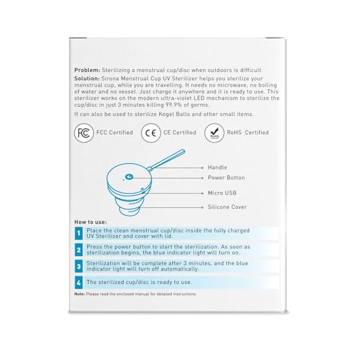 • Effective: Get hospital-grade sterilization for your menstrual cup at the comfort of your home. This device guarantees to get rid of 99.9% germs with its ultraviolet LED mechanism.