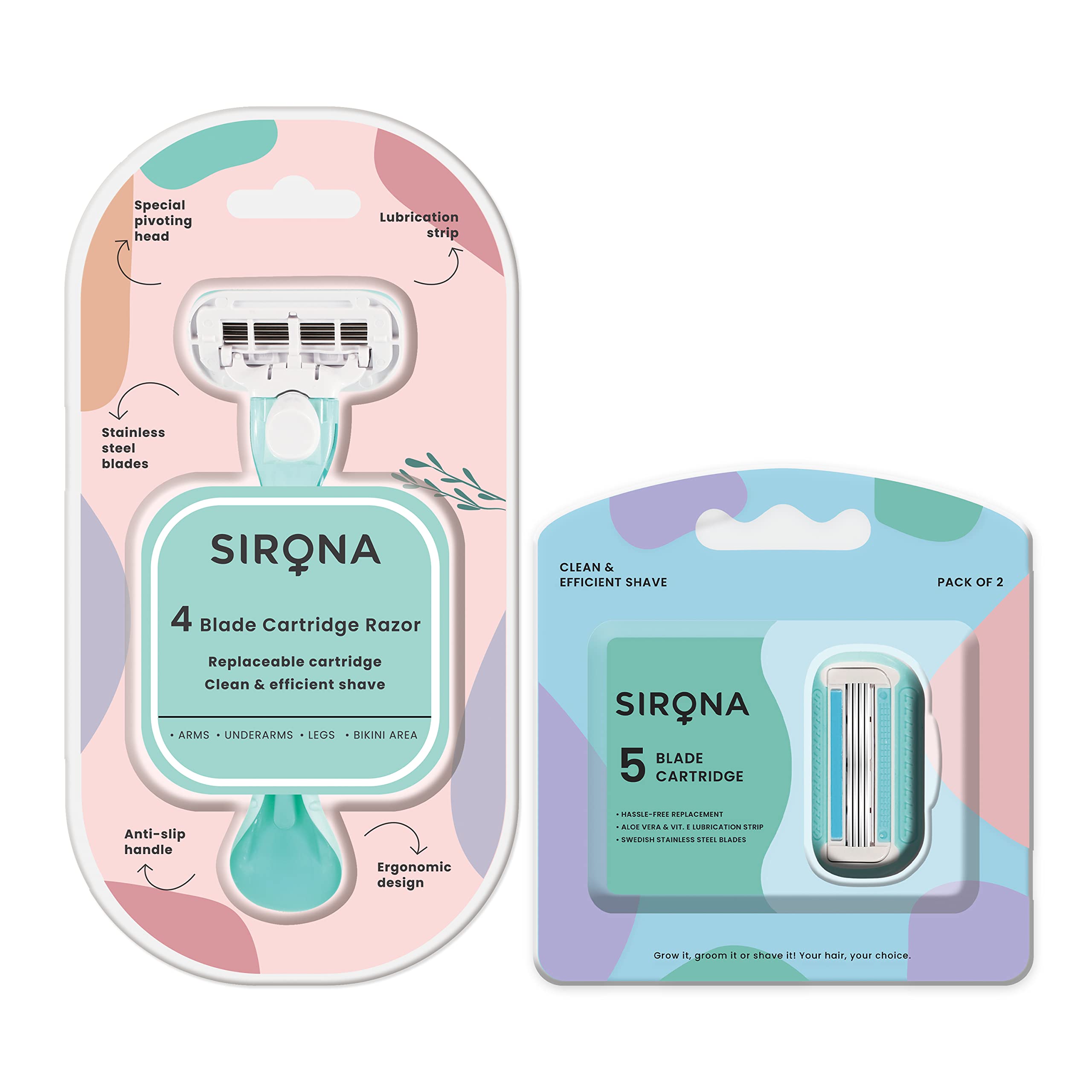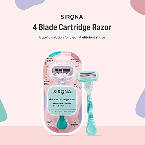 Sirona 4-blade Cartridge Razor is designed to ensure you get a clean and efficient shave every time. Its replaceable cartridge helps you to simply replace the blades when they wear out. 4 stainless steel blades ensure a precise shave. Pivoting head comfortably and safely removes hair from all contours of the body. Aloe Vera & Vitamin E lubrication strip moisturises the skin as you shave.