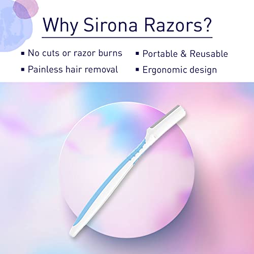 Sirona Reusable Face Razor for Women| Painless Facial Hair Removal | Eyebrow Shaper, Upper Lip, Forehead, Peach Fuzz, Chin, Sideburns & Dermaplaning Tool