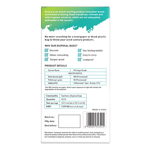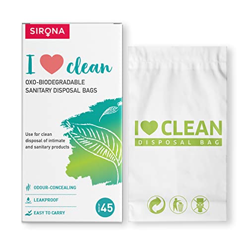 Now bigger and better. Worried about disposing your sanitary and intimate products. Made in India 'I love clean' by Sirona are cute Oxo biodegradable disposable sanitary bags and are best for hygienic disposal of intimate care products (sanitary pads tampons panty liners baby diapers condoms pee buddy) or general products (which need discreet disposal). No more black plastic bags no more newspaper. Now use I love clean.