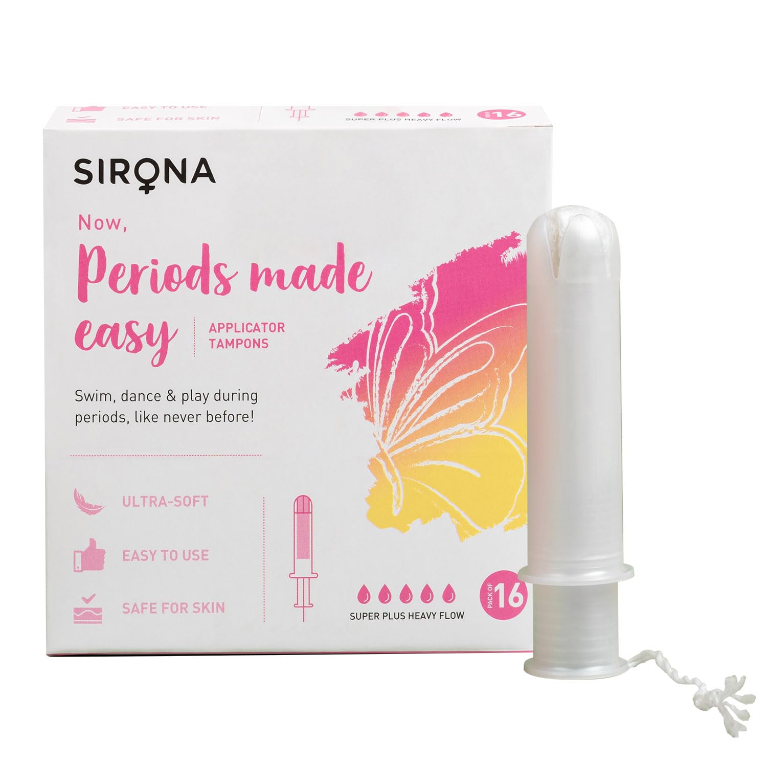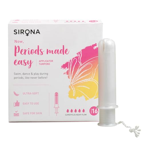 Sirona Period Made Easy Applicator Tampons for Heavy & Super Heavy Flow | Biodegradable Tampons | FDA Approved | Ultra Soft & Comfortable | Leak Free | Highly Absorbent Tampons for Rash Free Periods | 16 Pcs