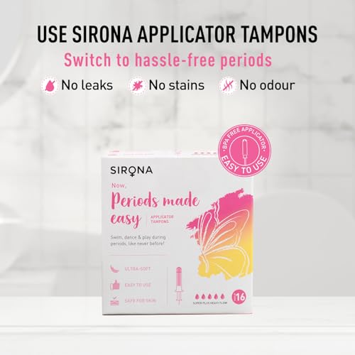• APPLICATOR FOR EASY INSERTION: Sirona tampons come with an applicator which makes inserting the tampons non-messy and super easy. With the applicator you dont have to worry about aiming or jiggling around. Just place the applicator at the tip of the vagin