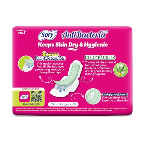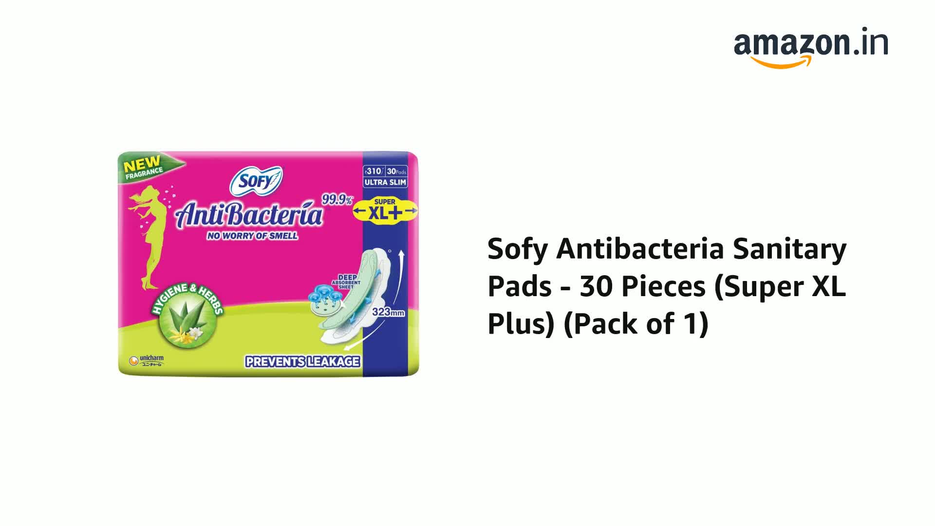 Sofy Anti-Bacteria Sanitary Pads (XL +Size - 323 mm) 30 Pads - 6 layer deep absorption & Herbal Shield for Bacterial Protection, Soft on skin with comfy dry top sheet (Pack of 1)