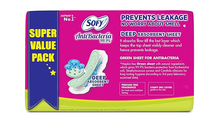 Sofy Antibacteria Extra Long Has Deep Absorbent Sheet Which Prevents Leakage And Gives You No Worry About Smell. Its Comfy Dry Cover Is Gentle To The Skin.