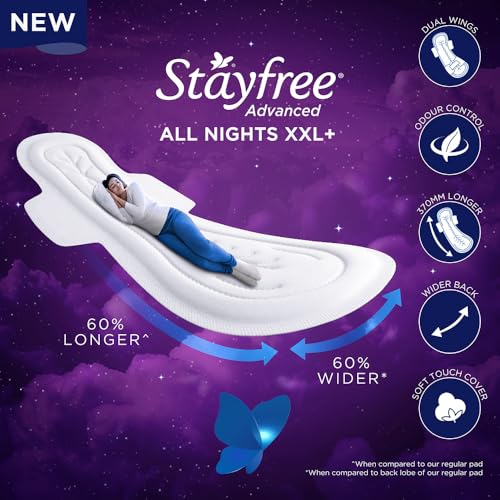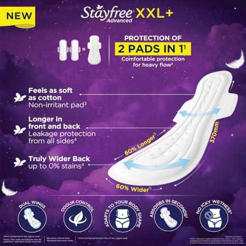 Stayfree Advanced XXL+ Ultra Thin Sanitary Pads for Women | 16 Soft Cotton Pads for All Night Ultra Comfort | Absorbs 2x More with Wider Back | Prevent Rashes | Odour Control