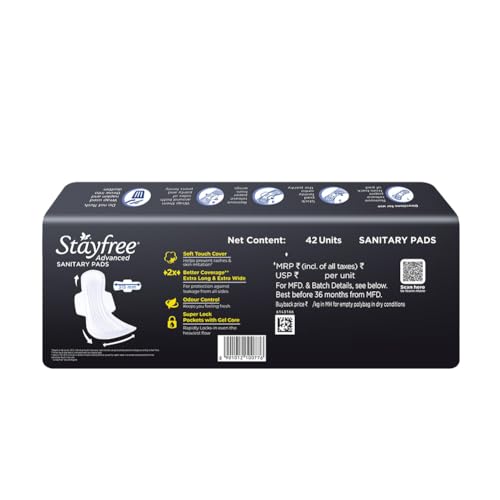 For ultra-comfort and complete protection throughout the night choose stayfree advanced all night. This ultra pad has wings plus an extra-long and extra-wide shape in the back to help prevent leakage on all sides. So even on your heaviest flow days you can have a peaceful night sleep without worry. The super lock pockets with gel core lock in fluid and the odour control system with natural plant extracts helps prevent odour for a fresh and confident feeling.
