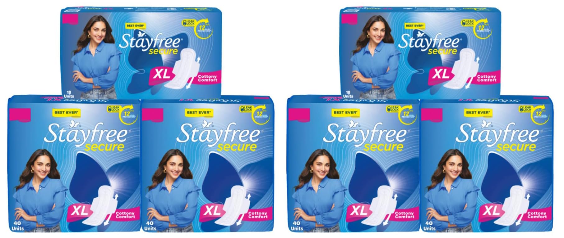 Stayfree Secure Soft XL Sanitary Pads for Women(98 Napkins) Combo Offer Pack-Buy 80pads Get 18Pads Free. (Pack of 2)