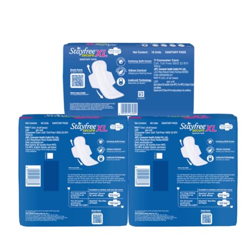 Stayfree Secure Soft XL Sanitary Pads for Women(98 Napkins) Combo Offer Pack-Buy 80pads Get 18Pads Free. (Pack of 2)